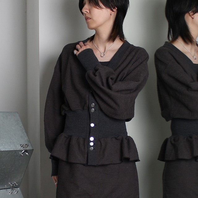 【raiMu】Frill Gathered Cropped Shirt Jacket