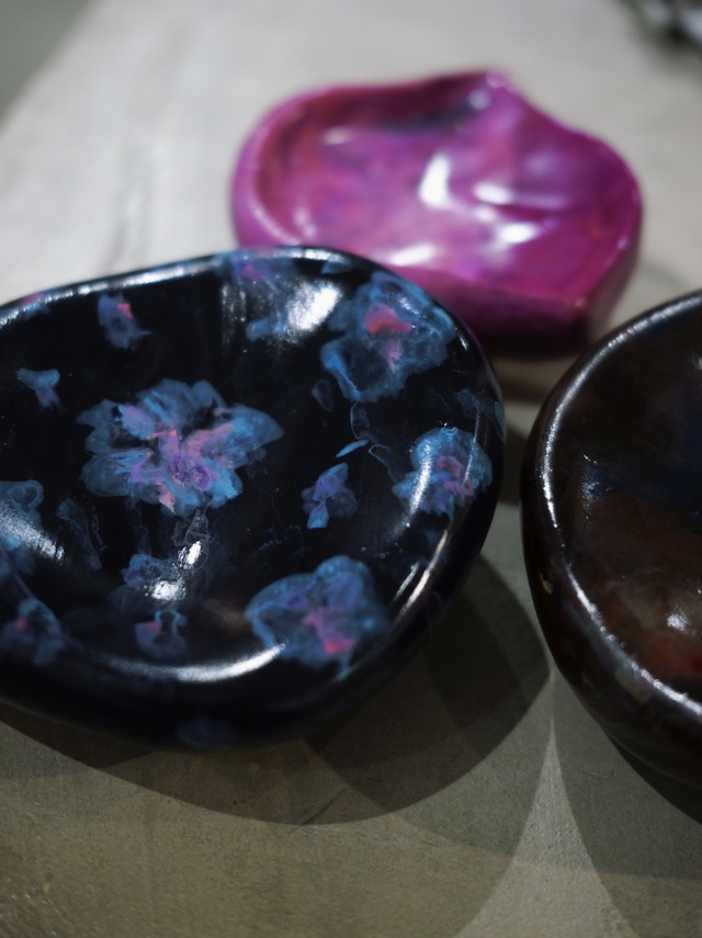 混ざり方も流れ方も ひとつとして同じものはない、 気分から生まれるカタチと色の アクセサリートレイです。 アクセサリーはもちろん 日常の小さなものたちを置く場所に 自由に使ってほしいです。 完璧じゃないからこそ 惹かれるものがあります。 樹脂素材なので割れにくいのも◎ サイズ 約11㎝×約10㎝ 高さ約3㎝ 素材 樹脂 生産国 日本製 注意 火気厳禁です。 商品のカラーは撮影環境、視聴環境などによって 多少の誤差が生じる場合がございます。