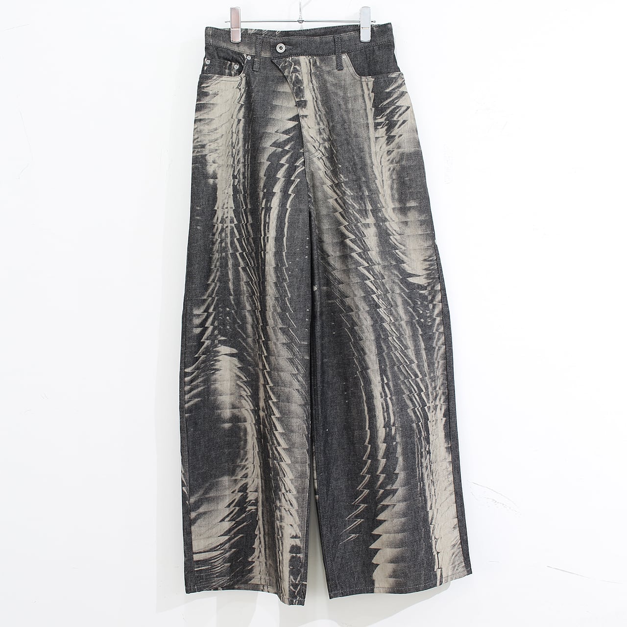 - 連続する光の瞬きを抜染(ブリーチ)によって表現したワイドデニム
