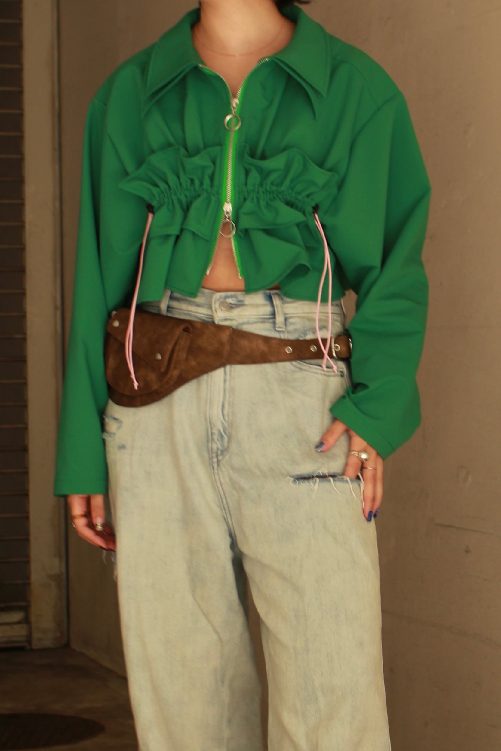 【raiMu】Frill Gathered Cropped Shirt Jacket
