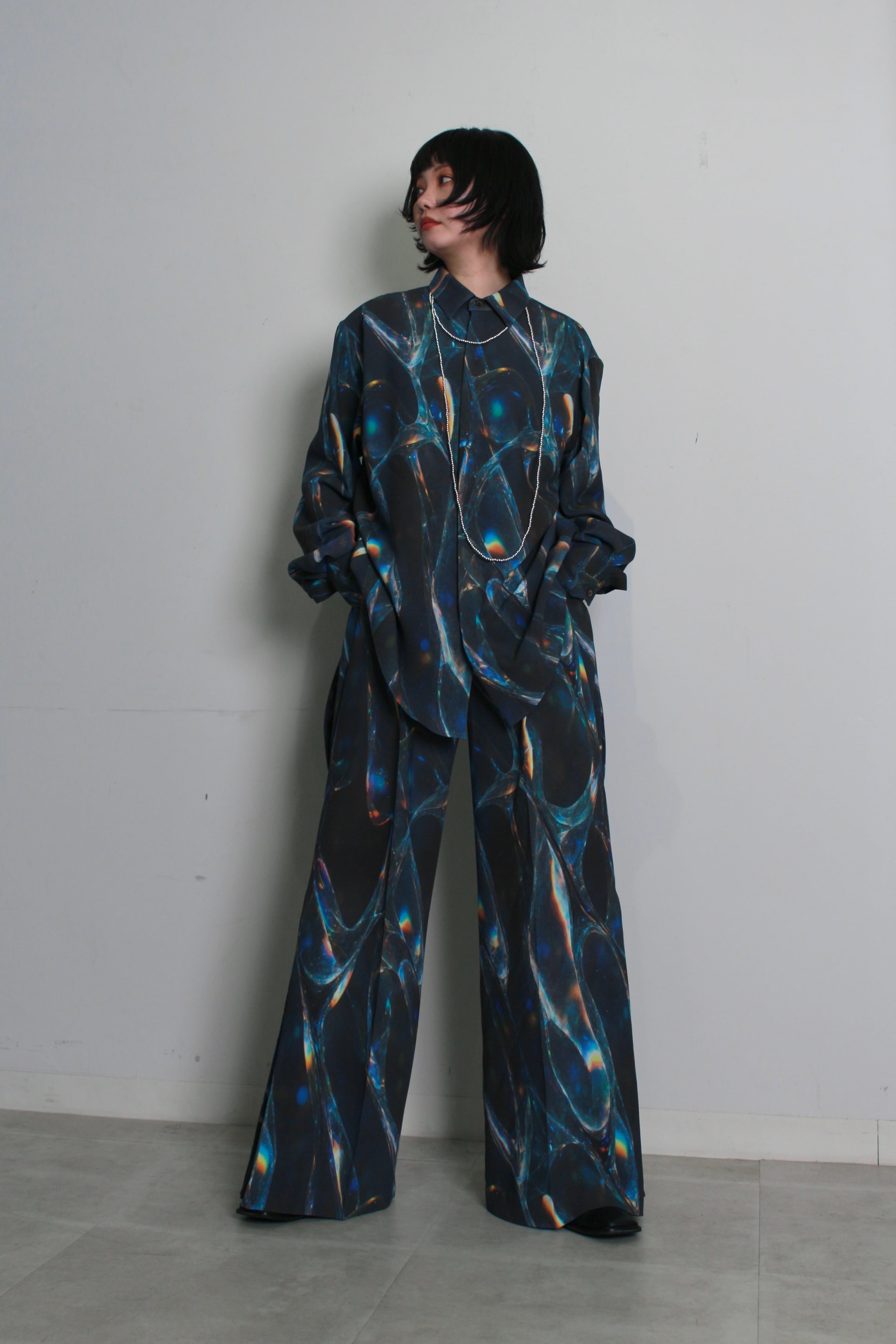 - 和装の意匠を再構成したハイウエストワイドパンツ