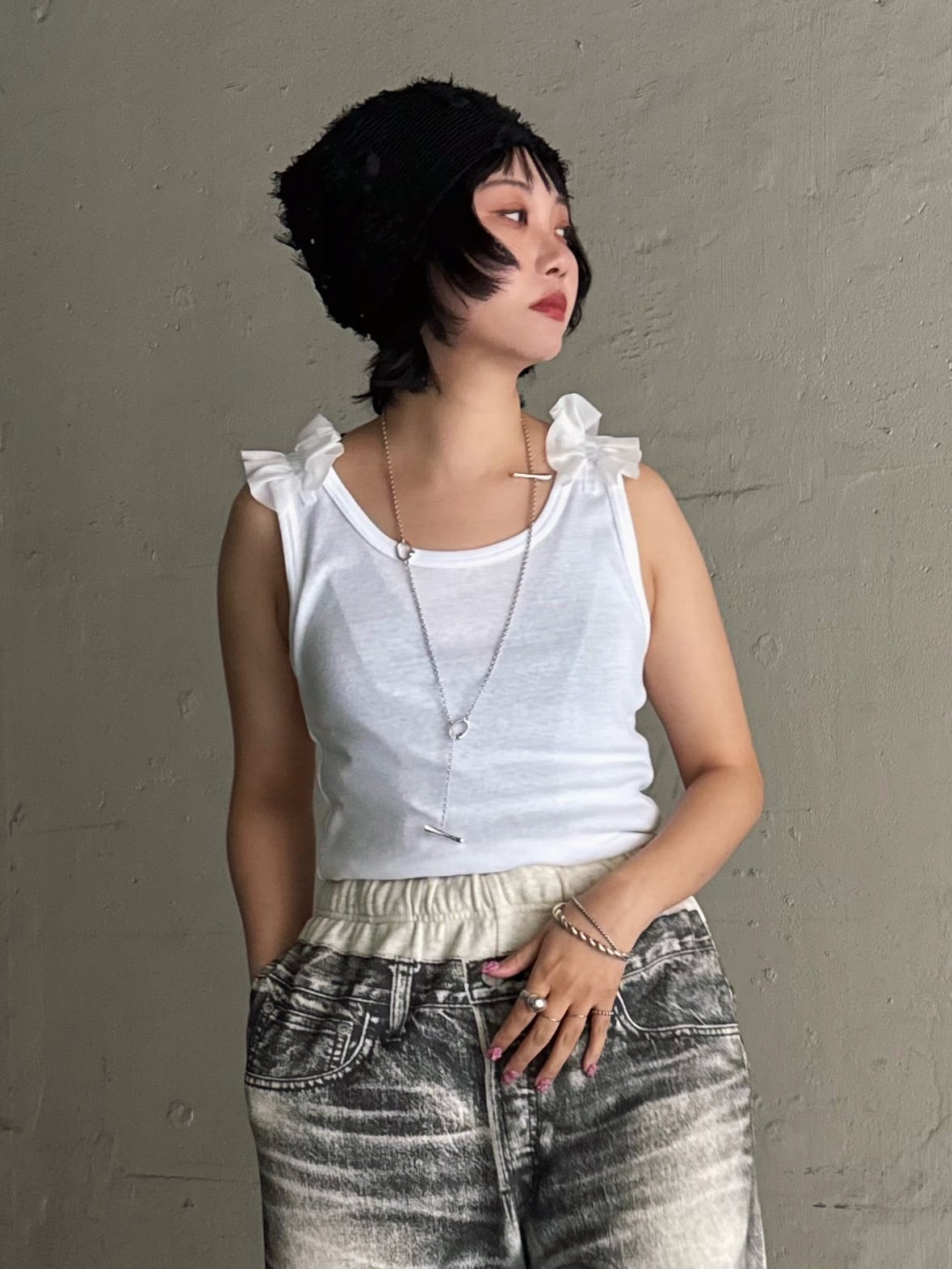 【raiMu】Frill Tank Top(white)